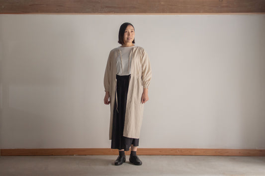 The kappōgi (traditional Japanese cooking apron) originates in the Meiji era, evolving from the "Western aprons" of the time. It gained popularity through cooking schools attended by daughters of esteemed families. It was designed to fully protect kimono from stains, so it featured long sleeves and an extended length for complete coverage.